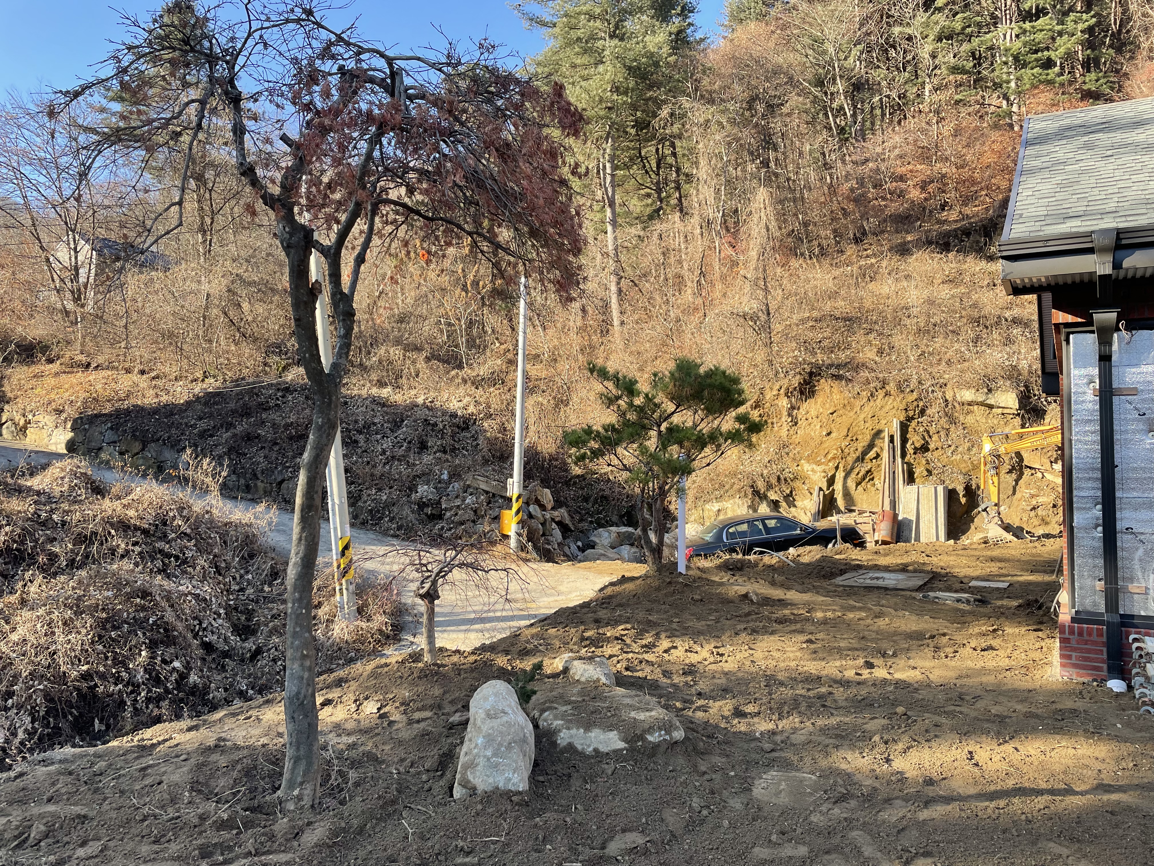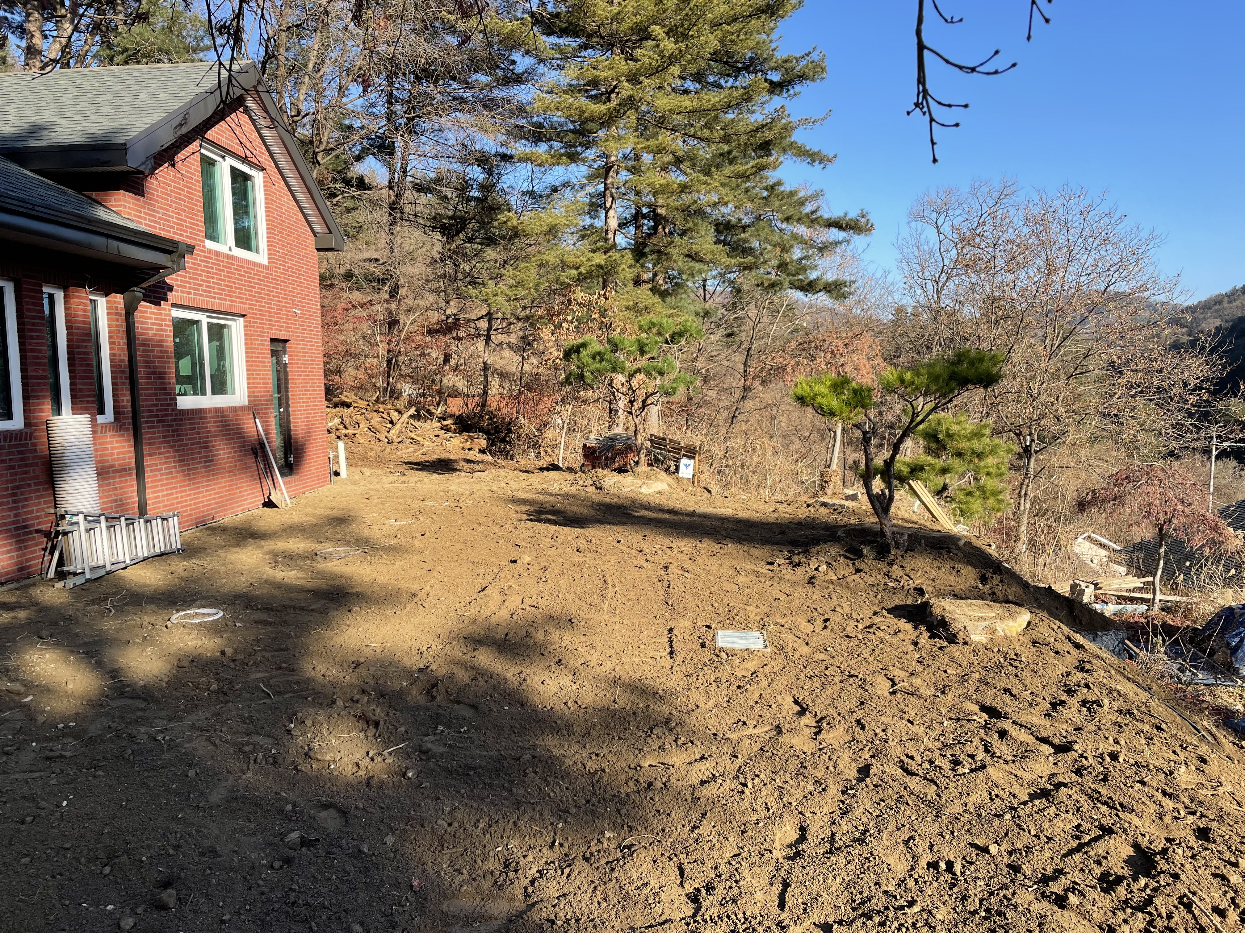 3일에 걸쳐 마당 성토, 조경 작업을 끝냈다.